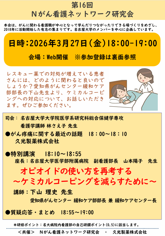 第16回Nがん看護研究会(保健学セミナー)【2026(令和8)年3月27日(金)】